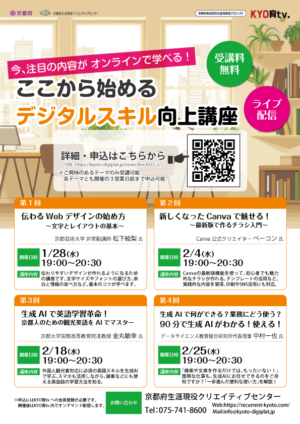 - 主催: 京都府(京都府生涯現役クリエイティブセンター)
