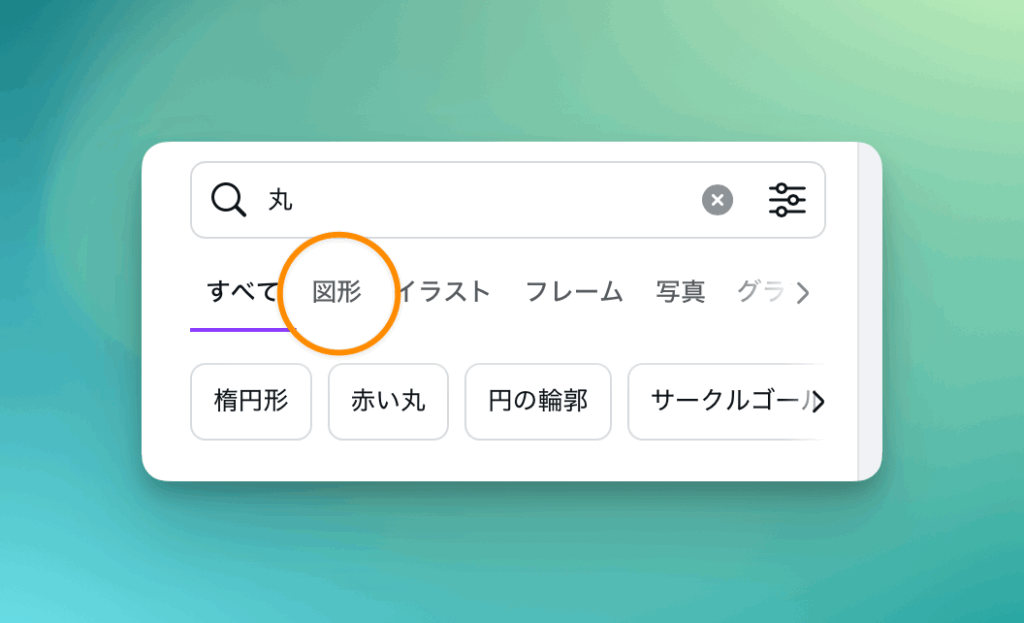 実は、Canvaのイラストの中には丸や三角形のような図形も含まれています。しかし、ここでいう「図形」とは、Canvaの専用機能として用意されている図形を指します。(画像のオレンジの丸)