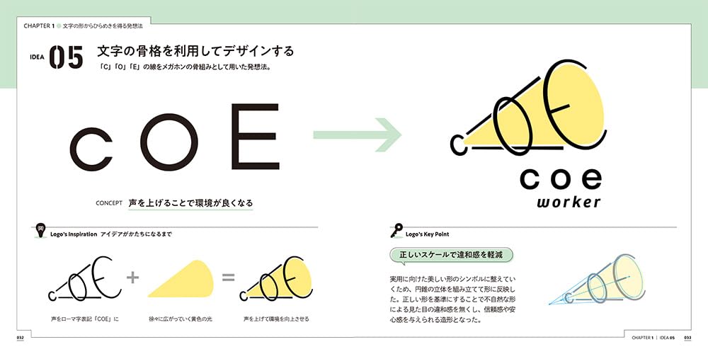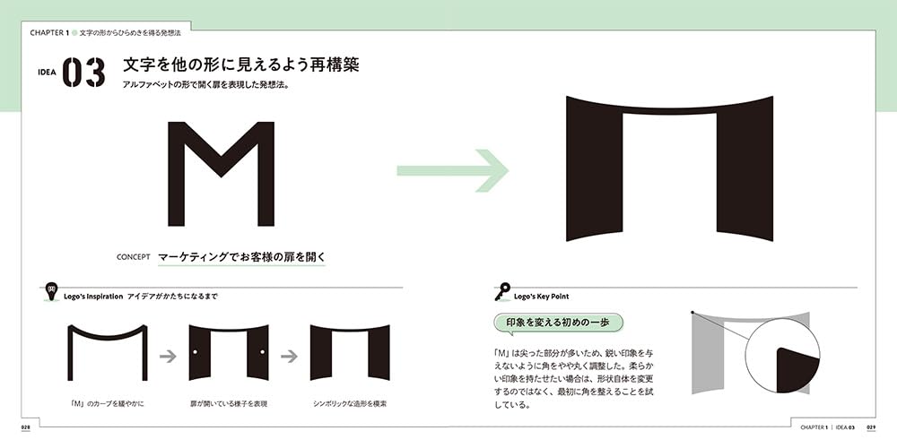 3つのアイデア[もじ・カタチ・色]で考える ロゴデザインの引き出し サンプルページ