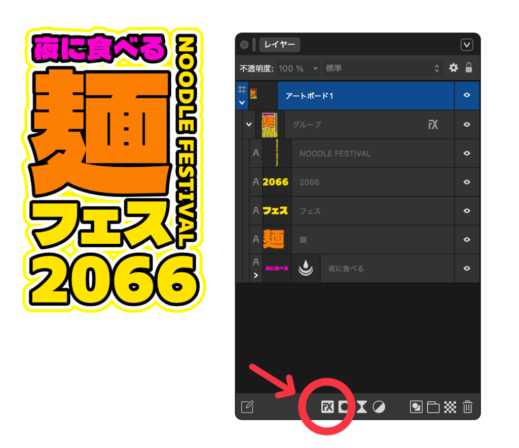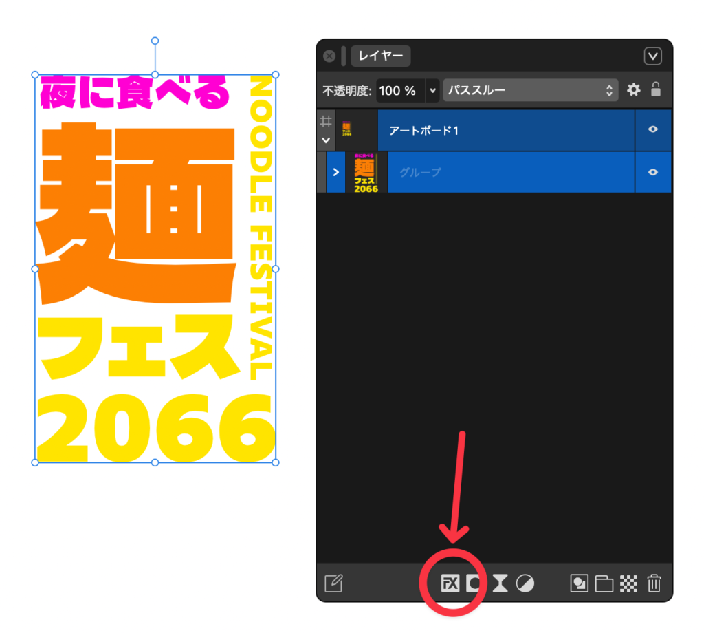 ② レイヤーパネルからFXを選択