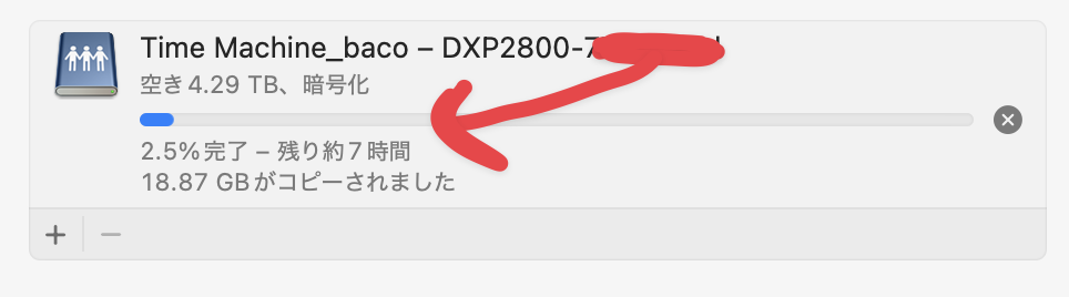 ・最初のバックアップは2TBあると10時間以上掛かりそう